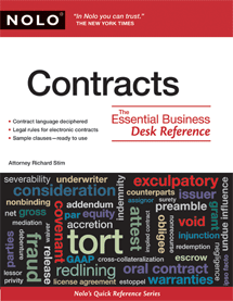 Contracts are everywhere. Richard Stim makes this obvious in the introduction to Contracts: the Essential Business Desk Reference. Enumerating everything from employment contracts to those involving insurance, credit cards, toll roads, and music and book downloads, contractual relationships are everywhere and nowhere. Because of this situation, Contracts is an essential tool for navigating the occasionally intimidating aspect of signing the dotted line. Following or breaking contracts have real consequences for all involved.