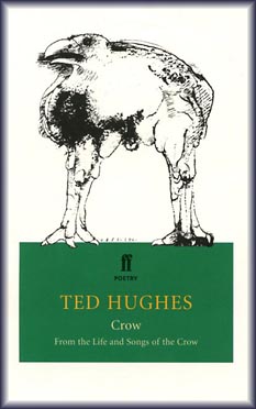 In addition to the volcanic poetry within, the Faber edition includes seven poems not in the original 1970 edition. The front cover of this short book has a marvelous illustration by Leonard Baskin, Crow rampant, legs muscular trunks supporting an obscene mass with a beaked head peeking out.