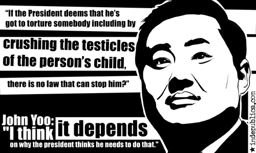 Padilla, an American citizen, was held in the brig and charged as an “enemy combatant.” The case could have unraveled the Bush Administration’s legal basis for torture, extraordinary rendition, and other authoritarian atrocities committed in the name of liberty and freedom. (These colors don’t run, just the intelligence and common sense of the American voter.) In the end, the case was struck down on a technicality, since Padilla should have petitioned the brig’s commandant, not the Secretary of Defense. Unfortunately, this leaves a lot of questions unanswered and civil liberties extremely vulnerable to Executive malfeasance and whatever psychotic lunacy one can get away with by saying the magic words “national security.”