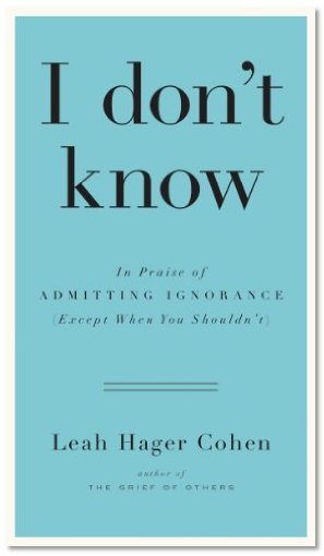 Ms. Cohen covers a lot of material in her slim book. She does so with a light touch and an ability to capture the sparkling nugget of the story. I Don’t Know: In Praise of Admitting Ignorance (Except When You Shouldn’t) educates and entertains in equal measure, with historical episodes interspersed with personal experiences.